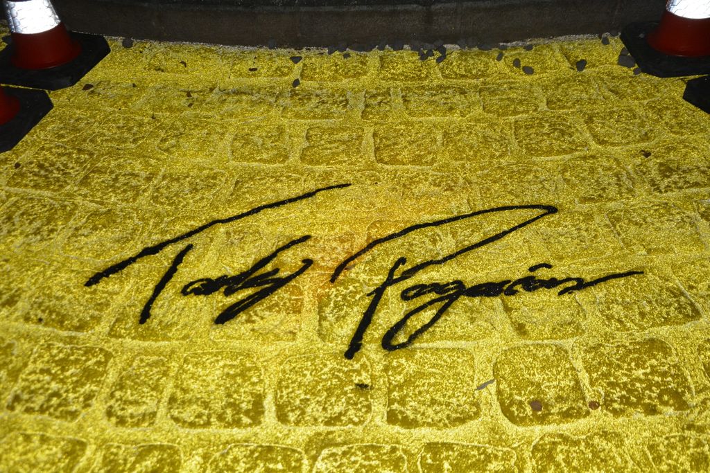 Predno je stopil na oder, se je podpisal na rumeni krog v bližnjem krožišču.