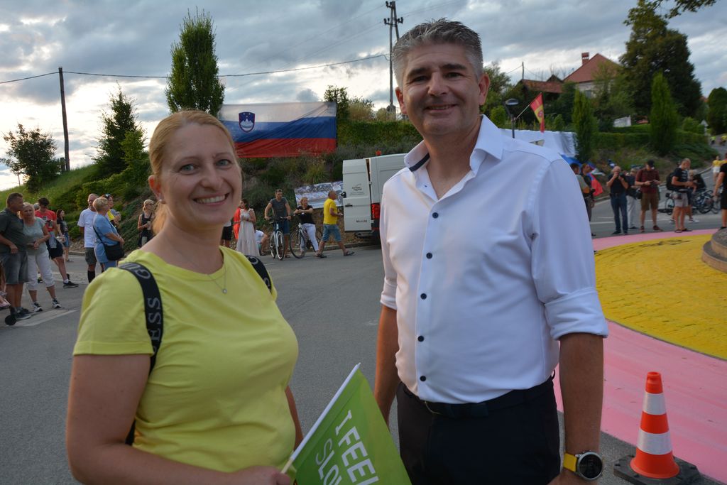 Že pred njim sta stopila na oder njegov spremljevalec v avtomobilu Andrej Hauptman in zelo simpatična Tadejeva partnerka Urška Žigart. Andrej je priznal, da je kdaj trepetal za Tadeja, da se mu ne bi kaj hudega pripetilo na Touru, Urška pa, da je bilo zanjo najteže kolesariti s Tadejem na Možjanco. Povedala je tudi, da sicer »navijata drug za drugega«, da pa za Tour de France Tadej »ni potreboval posebne spodbude, saj je bil že sam zanj dovolj motiviran«. Duhovito je pripomnila, da včasih »raje pobriše po kopalnici«, kot pa da bi bila vsa napeta, kako bo s Tadejem med kolesarsko dirko.
