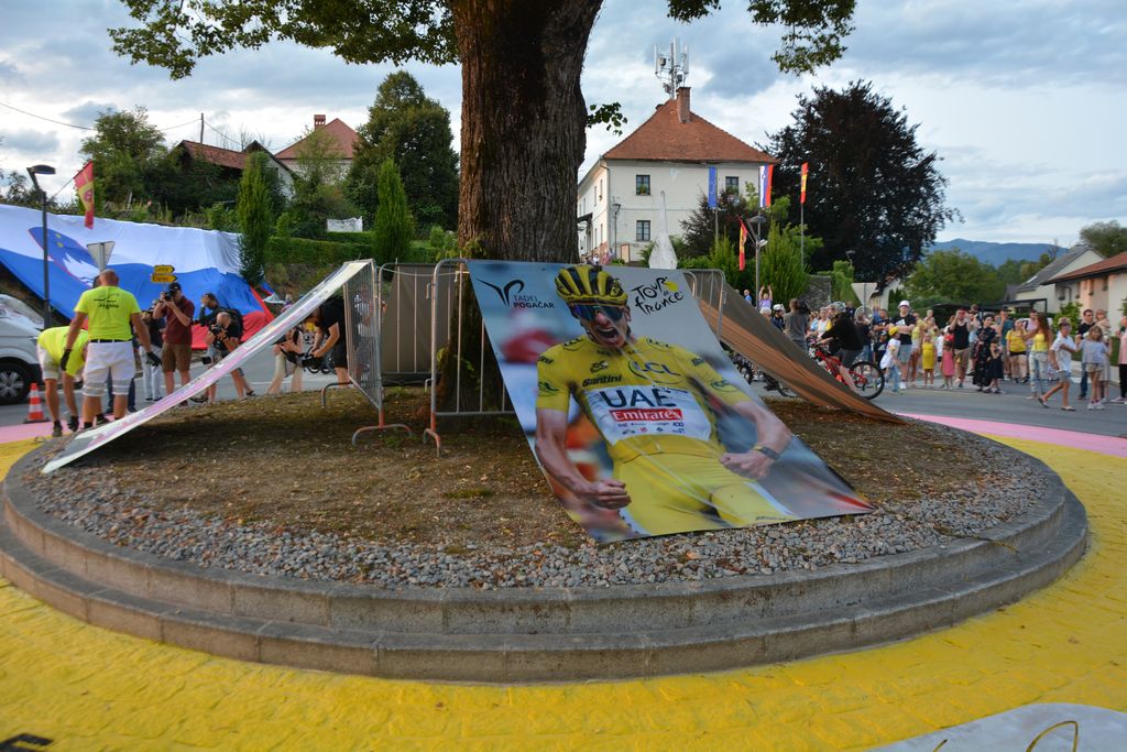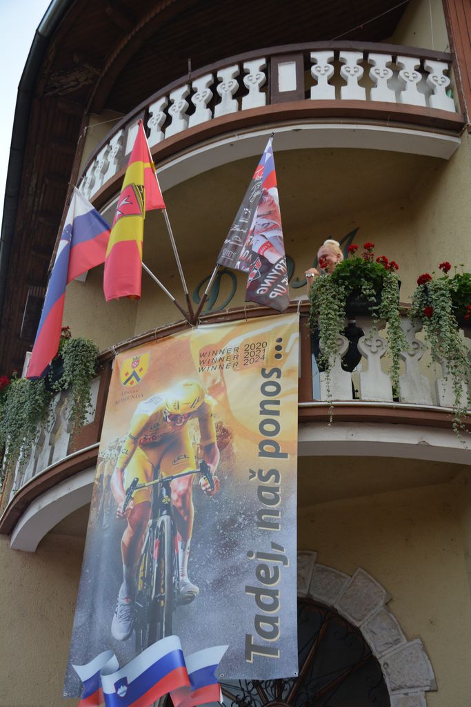 Te letnice je bilo videti na lepaku, ki je visel z balkona na pročelju občinske stavbe, na katerem je bila tudi fotografija Tadeja Pogačarja v rumeni majici vodečega na Touru in napis: TADEJ, NAŠ PONOS!