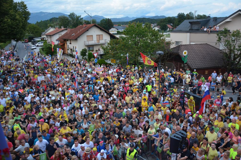 Sprejem Tadeja Pogačarja se je zavlekel v pozne večerne ure, vendar ljudje kar niso mogli domov, vzhičeni in dobre volje nad vsem dogajanjem v središču Komende. Med njim razvitjem velikanske slovenske zastave na brežini ob cesti na Klanec. Obilo je bilo manjših slovenskih zastav in zastavic z napisom I feel Slovenija. Lipa v krožišču je bila obdana z vidnimi spomini na zmagovite Tadeje vožnje. Množica, razmeščena, kjer je bilo kaj prostora, tudi na bližnjem hribu, je uživala v lepi glasbi, vzhičena valovila in prepevala, si dajala duška ob pivu in drugih napitkih, predvsem pa veselila enkratnega doživetja – srečanja od blizu z najboljšim kolesarjem na svetu Tadejem Pogačarjem sredi Komende. Njemu je veljal tudi pozdrav s prižganimi »lučkami« na mobitelih.