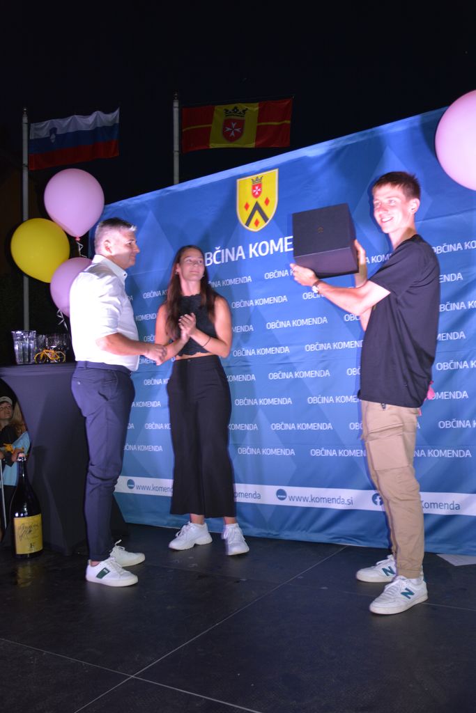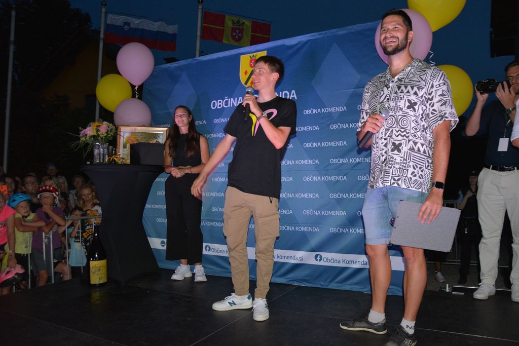 Z njim sta se veselila tudi oče Mirko in mama Marjeta, ki tudi imata velike zasluge za Tadejeve uspehe. Pa še drugi iz Pogi Teama, ki je tudi privozil na prireditev. Morda bo med njimi, najmlajšimi in mladimi člani, kdo tudi njegov naslednik … Če ne tako visoko, lahko zelo visoko. Vzornika imajo. Tudi že prejšnje odlične komendske kolesarje: Luka Pibernika, Miho Koncilija, Tadejevega prvega trenerja.