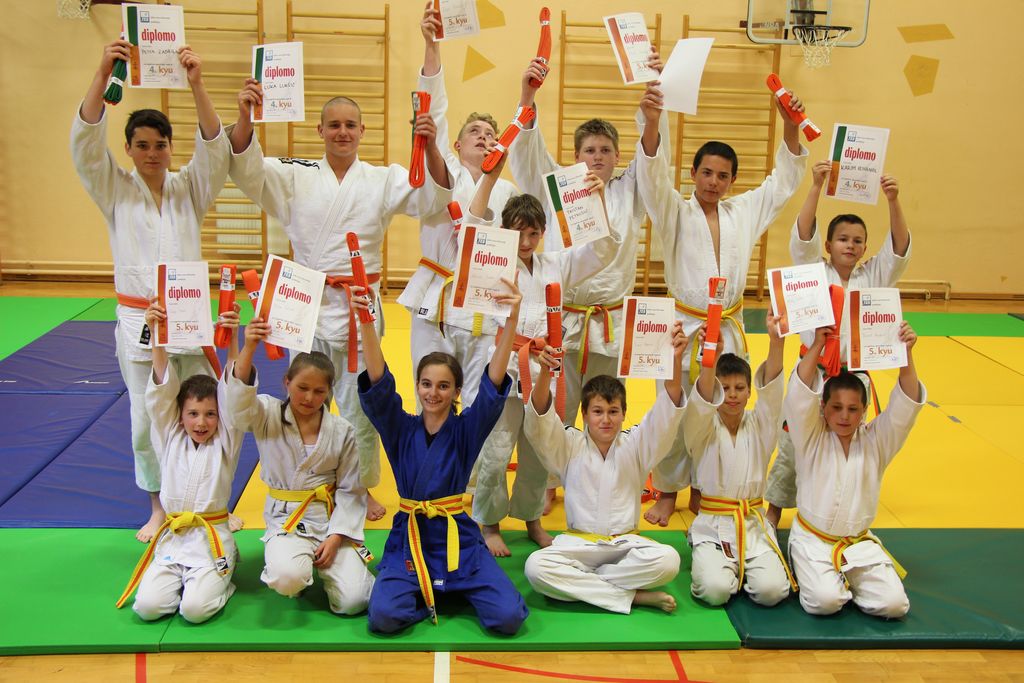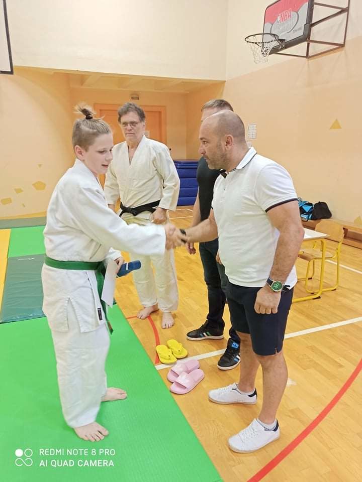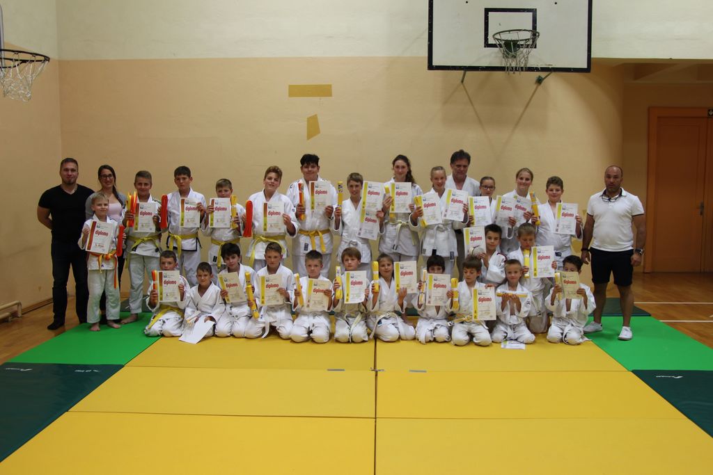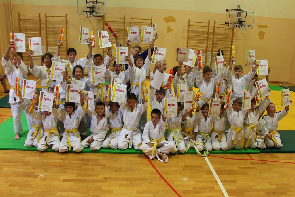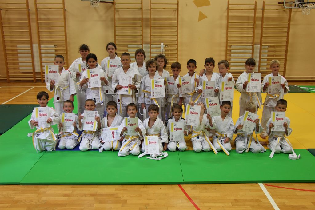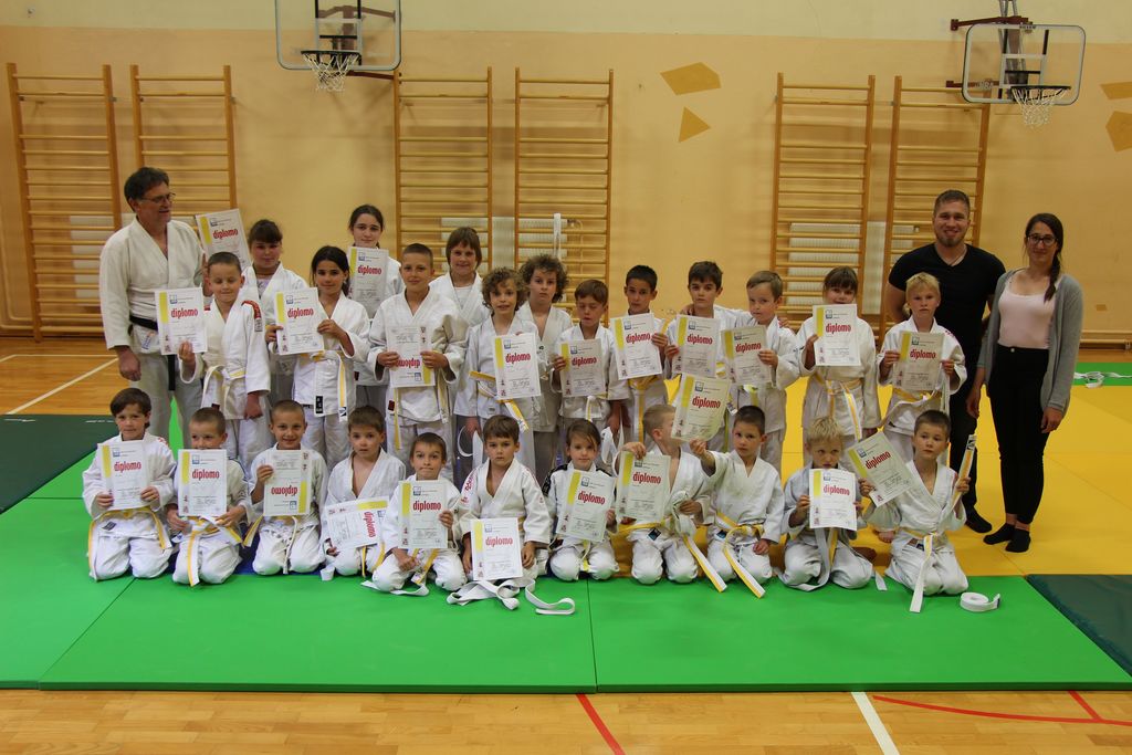 Ker pa izpiti za višje pasove v judu potekajo žele v osnovni šoli, mali vrtčevski judoisti pa prav tako že obvladajo judo padce, prevale in kotaljenja, pa smo tudi njim omogočili prikaz znanja, kjer so ob uspešno opravljenem »preizkusu« otroci prejeli diplomo in našitek za kimono z judo pando – maskoto Judo kluba Komenda. Na polaganju jih je obiskala tudi naša prijateljica judo panda in jih nagradila z bonboni. Otroci so se preizkusili tudi v spretnostnem poligonu, kjer so prva tri mesta osvojili: 1. Aleksandar Ninić, 2. Lili Globočnik in 3. Klemen Juš Pekošak. Čestitamo.
