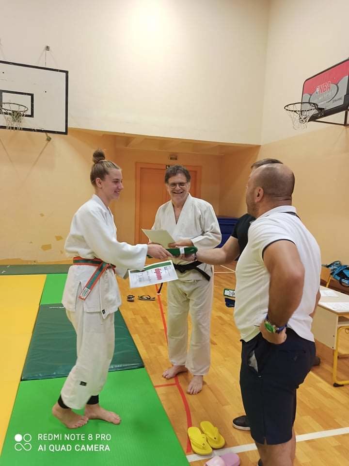 V sredo, 17.6.2020, so judoisti Judo kluba Komenda opravljali izpite za višje pasove, kjer je preko 100 judoistov uspešno opravilo izpit ter prejelo višji pas. Predsedniku izpitne komisije g. Milanu Kunčiču iz Jk Olimpija, so prikazali tehnično pravilne mete, končne prijeme, vzvode in borbene akcije ter odgovarjali na teoretična vprašanja. Za višje pasove (2. kyu in 3. kyu) – moder in zelen pas, je bilo potrebno prikazati tudi kato – to je oblika v naprej določenih tehnično dovršenih metov, ki se izvajajo zelo usklajeno in v pravilnem časovnem zaporedju. Izpit za 2. kyu - moder pas je uspešno opravil Anej Kladnik Volf, izpit za 3. kyu - zelen pas pa Haya Veinhandl Obaid, Angelina Pajić in Žiga Pahor. Izpitov se je udeležila večina članov iz vseh lokacij: Trzin, Komenda, Kamnik, Šmartno v Tuhinju, Stranje, Nevlje in Litija. Vsi kandidati so bili dobro pripravljeni, ne glede na to, da so bili prikrajšani skoraj za 2 meseca treningov. Čestitamo vsem judoistom in njihovim trenerjem.