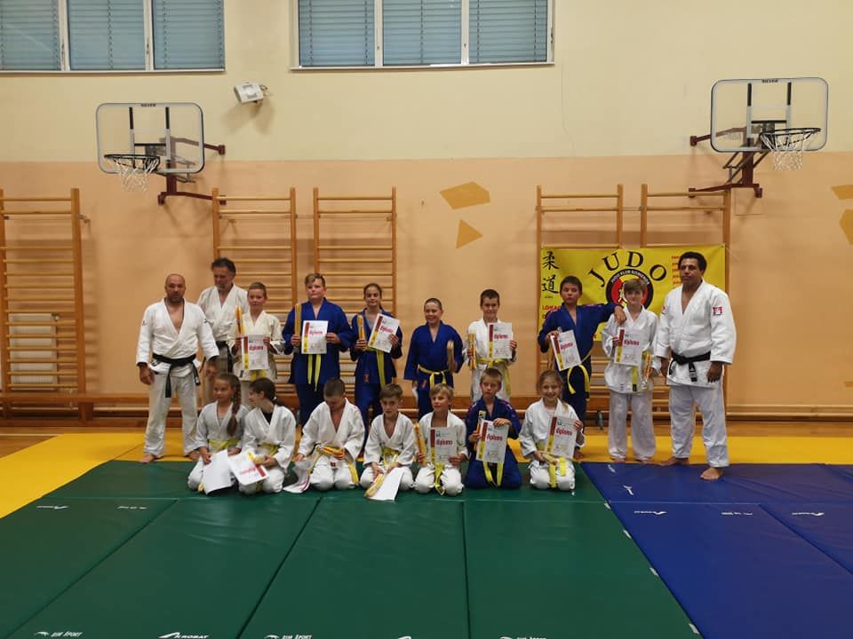 S koncem šolskega leta se je končala tudi sezona za judoiste Judo kluba Komenda, ki so v sredo, 12.6.2019 v telovadnici OŠ Moste pri Komendi pred izpitno komisijo pokazali pridobljeno znanje – mete, padce, vzvode, davljenja, končne prijeme, borbe ter teoretično znanje in opravljali izpite za višje pasove. Polaganja se je udeležilo preko 140 članov in prav vsi so ga uspešno opravili, nekateri celo s pohvalo predsednika izpitne komisije. Najvišji pas, ki ga lahko polagaš v klubu je moder – 2. kyu. Nova nosilca modrega pasu sta postala Matej Mally in Luka Žagar, ki sta pokazala tudi kato. ki v slovenskem prevodu pomeni »obliko« in sicer določeno zaporedje prikaza judo tehnik partnerja kažeta usklajeno. Uspešno opravljeni izpiti, predvsem pa nova barva pasu zavezanega preko kimona je na obraz pričarala nasmehe številnih otrok in ponosnih staršev. Z letošnjo sezono smo zelo zadovoljni, saj smo bili uspešni tako na organizacijskem področju, kot tudi tekmovalnem. Otroci so zadovoljni odšli na zaslužene počitnice, na tatami pa se bodo ponovno nekateri vrnili že avgusta na poletnih pripravah.