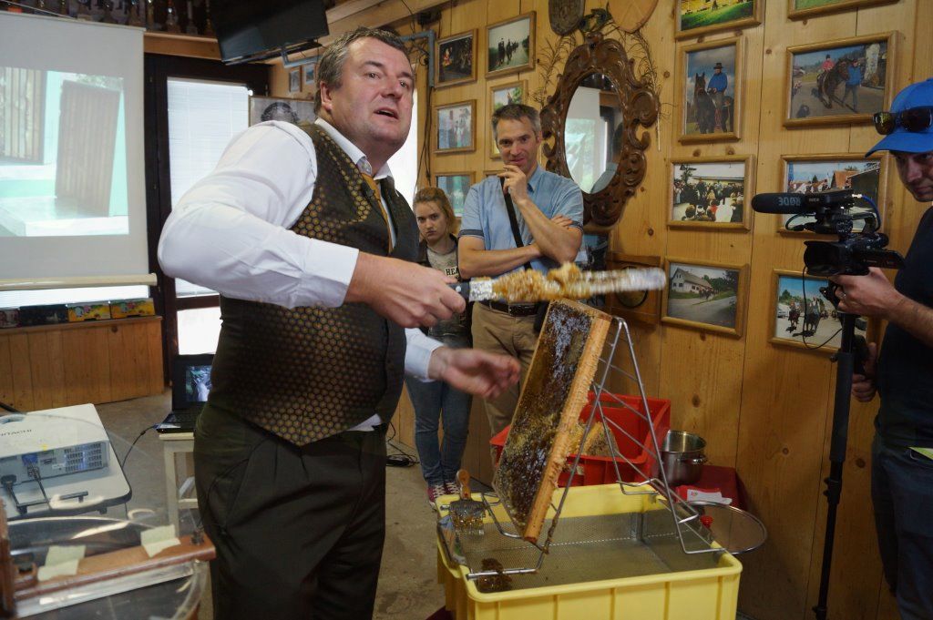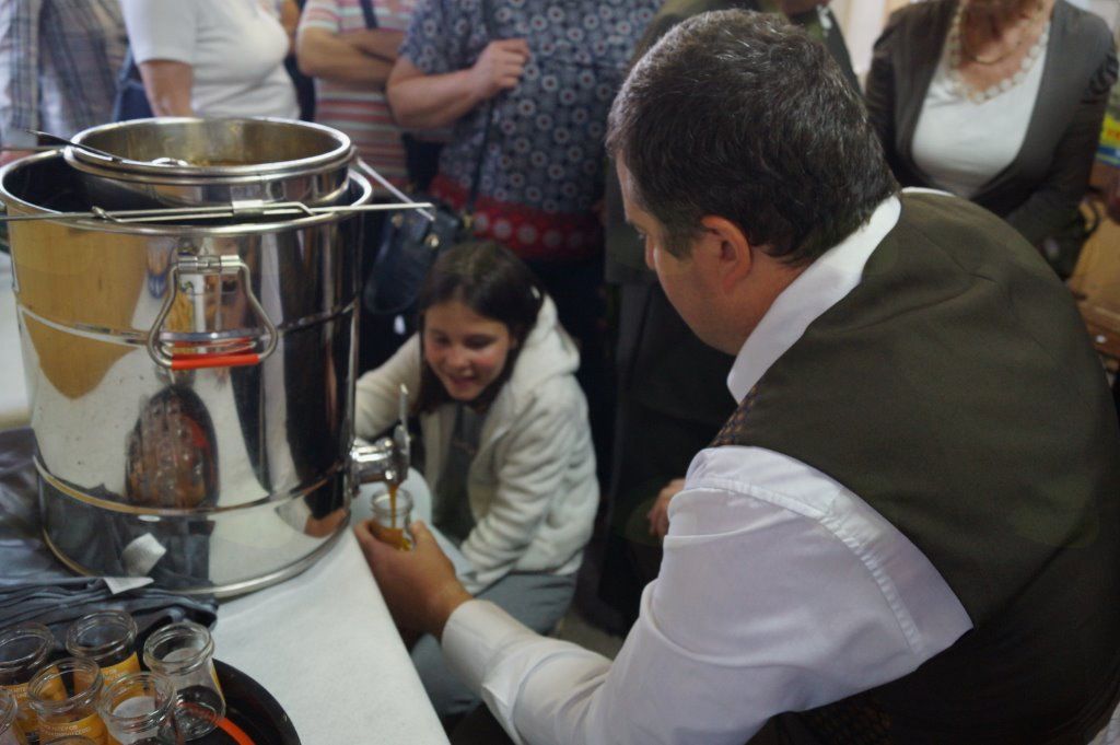 Sledilo je naslednji dan, 19. maja, najprej odprtje prenovljenega čebelnjaka, ki ga je na panjskih končnicah zares lepo in izvirno poudarilo s čipkami Klekljarsko društvo Čebelica. Zaigral je harmonikar, zaigrali sta mladi flavtistki, zapeli so Fantje iz treh vasi, vse prisotne je nagovoril podžupan Igor Štebe in slovesno so prerezali trak v prenovljeni čebelnjak. Uro za tem je sledilo odprtje razstave Čipka na satovju v Lončarjevem muzeju na Podborštu ob 10. obletnici delovanja društva. Spet so zapeli Fantje iz treh vasi, spet sta zaigrali mladi flavtistki, predsednica društva Čebelica Bernarda Hozjan pa je podelila priznanja z zahvalami. Slovesno dogajanje pred 20. majem, svetovnim dnevom Čebele, pa je sklenil zanimiv prikaz točenja medu. Kaj je in kaj pomeni čebelarjenje za prepoznavnost te lepe etnološke značilnosti in posebnosti kranjskega čebelarja in čebelarjenja v minuli dolgoletni preteklosti, je zanimivo med prikazom točenja orisal predsednik Čebelarskega društva Petra Pavla Glavarja Komenda in vodja Vzrejelišča matic v Kamniški Bistrici, Milan Starovasnik. Vsak udeleženec, in ni jih bilo ravno malo, je dobil potem kozarec pravkar točenega cvetličnega in čemaževega medu iz Kamniške Bistrice. Številni pa so tudi lahko poskusili in se prepričali, kakšen je bil včasih ob točenju medu "žvečilni gumi" - med z obrezanim satjem (voskom), cvetnim prahom, ki je z žvečenjem posladkal, nasitil in tudi zdravil.