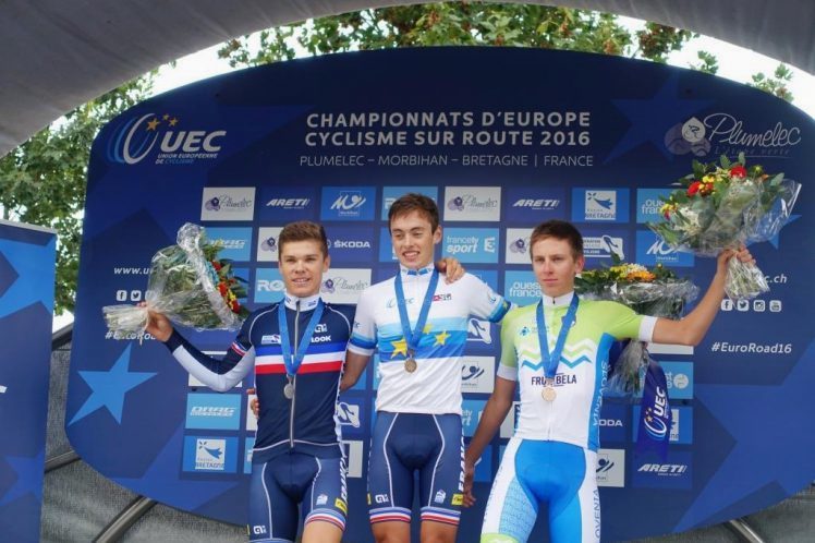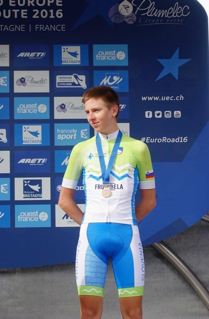 Tadej Pogačar s Klanca, Komenda, član KD Rog in slovenske mladinske reprezentance na Evropskem prvenstvu v cestnem kolesarstvu v Plumelecu v Franciji je v kategoriji mladincev osvojil odlično tretje mesto.