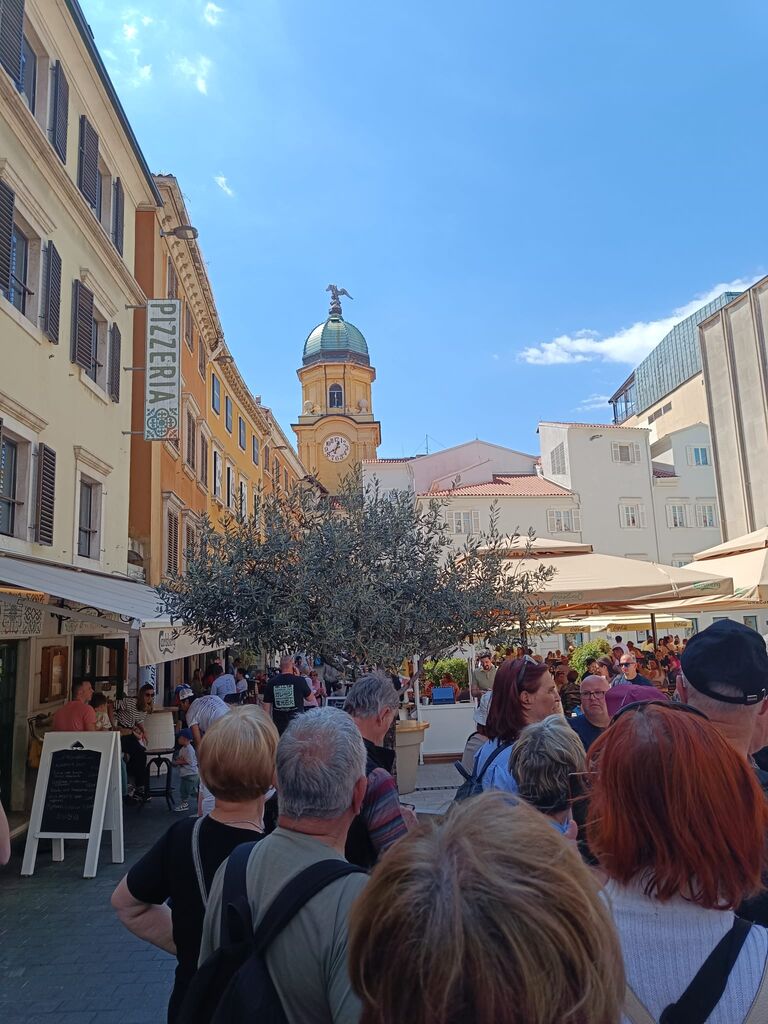 Z avtobusom smo se nato odpravili proti mestu Reka, ki jo je predvsem v 20. stoletju zaznamovala zelo burna zgodovina, saj je večkrat zamenjala državno pripadnost, kar kaže na njen pomemben strateški in politični položaj ob Jadranu. Reka je bila skozi zgodovino pomembno pristanišče in stičišče različnih narodov, med njimi tudi Slovencev. Kot večkulturno okolje ohranja spomin na ljudi različnih narodnosti, ki so prispevali k njenemu razvoju. Tako so s poimenovanjem ulice po Janezu Trdini v centru mesta na ta način dali priznanje njegovemu delu in njegovi povezavi z mestom. Med sprehodom po mestu smo si ogledali večje reške znamenitosti: Korzo, grajski stolp z mestno uro, Cerkev Marijinega vnebovzetja s stolpom, Katedralo Svetega Vida, Reško tržnico, Hrvaško narodno gledališče Ivana Zajca itd.