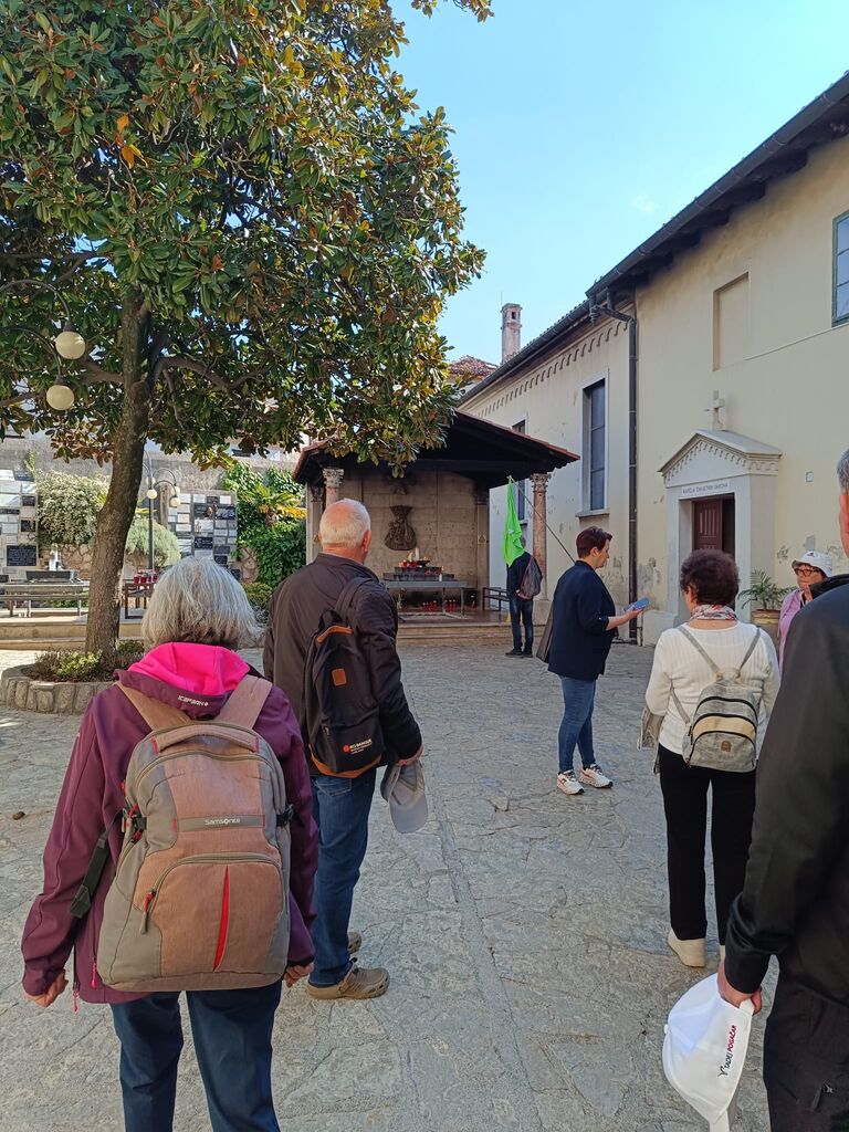 Ustanova Petra Pavla Glavarja, župnija Komenda in Aritours so v soboto, 18. 4. 2026, peljali župljane Komende na romanje na Trsat, Reko in Kastav v spomin in zahvalo Petru Pavlu Glavarju, ki je na Trsatu daroval novo mašo ter drugim Slovencem, ki so s svojo vero, mislijo in delovanjem zaznamovali reški prostor. Najprej smo obiskali mogočno romarsko baziliko Svete Device Marije, eno najpomembnejših marijanskih svetišč na Hrvaškem. Trsat ima izjemen pomen že od 13. stoletja, ko naj bi se tam po izročilu čudežno pojavila nazareška hišica. V baziliki ima posebno mesto slika Milostne matere, ki naj bi jo naslikal Sveti Luka. Zaradi izkazane časti je bila slika okronana s pravo zlato krono. Ogledali smo si še kapelo votivnih darov. V njej so shranjeni številni darovi vernikov, ki pričajo o čudežih in izražajo njihovo hvaležnost Materi Božji Trsatski. Sledila je maša, ki jo je daroval duhovni vodja romanja p. Cristian Balint, komendski župnik, ki je ravno prejšnji dan obeleževal 22 let mašniškega posvečenja. Za obletnico so mu čestitali predsednik Ustanove Petra Pavla Glavarja Štefan Petkovšek, ki mu je ob tej priliki namenil lepo misel o pomenu duhovne službe, in tudi ostali romarji.
