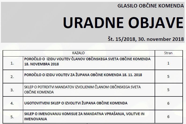 Uradne objave 15/2018