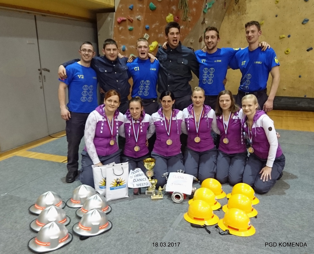 Na sinočnjem tekmovanju so članice A izmed 23 ekip osvojile tretje mesto in tako ponovno dokazale da nedvomno sodijo v sam vrh ekip članic A v Sloveniji. S tem uspehom so potrdile tudi DRUGO MESTO v pokalnem tekmovanju za leto 2017. Ta velik uspeh pa je plod dolgotrajnega odrekanja, priprav, vaj, tekmovanj, ... . Ves njihov dosedanji trud in uspehi so prispevali tudi k uvrstitvi na izbirno tekmovanje za udeležbo na gasilski olimpijadi sredi julija v Beljaku. Upamo in želimo si, da bi se jim (in tudi društvu) v nedeljo. 23. aprila nekaj po 11:00 uri v Slovenski Bistrici uresničile življenjske sanje in želje ter bi si uspele izmed šestih tekmovalnih enot priboriti eno izmed dveh vozovnic za gasilsko olimpijada.