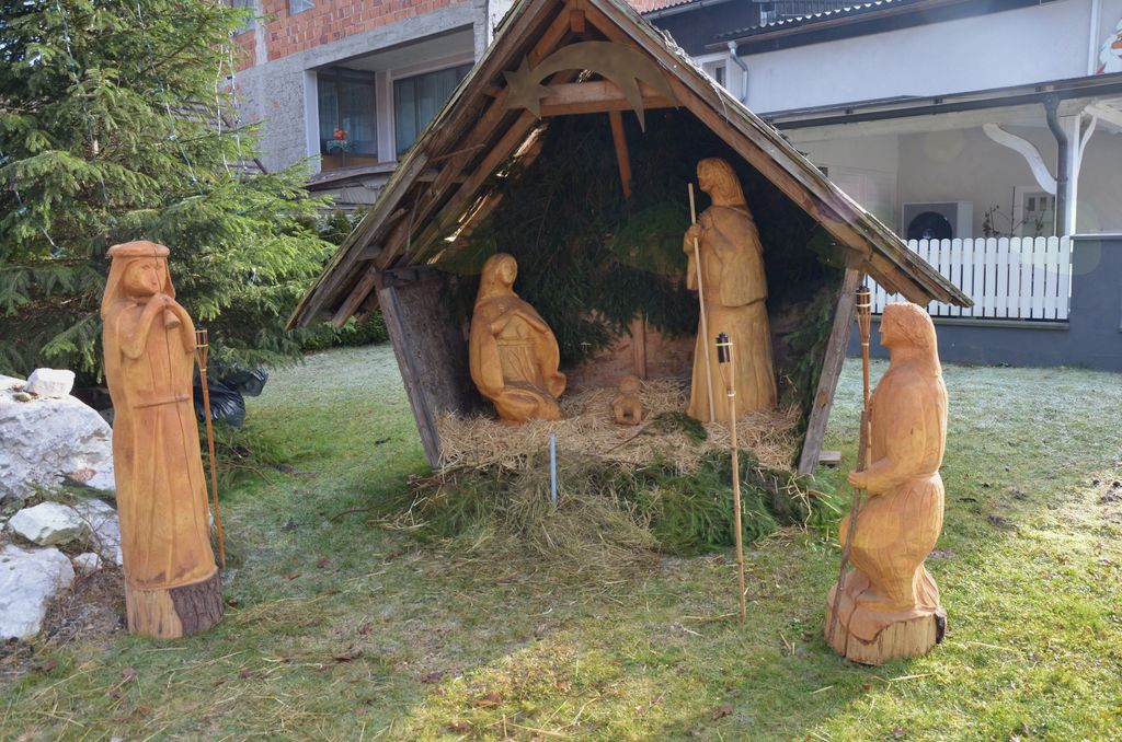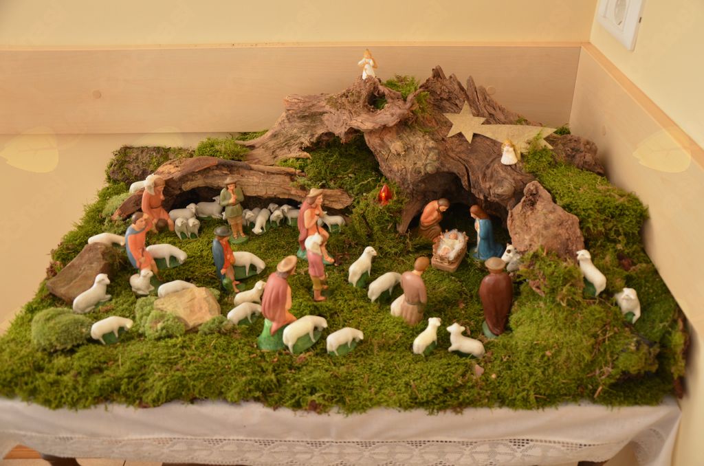 Potolaži me postanek in molitev pred lepo kapelico Svete družine na križpotju v Žejah (kako lepo, da so vaščani to kapelico namenili družini družin!), nato sovaščanka Marta, članica Turističnega društva Komenda, z voščilom: »Vesele praznike!« Z njim me ohrabri in razveseli v otožnih trenutkih, razmišljanju. Veliko bolj kot druščina mladih pri Coni B, ki se greje s »kuhančkom«, čajem, kavico, nekateri že z pivom, ki te le še bolj ohladi, odžeja pa tako ne. Uf, me zmrazi! Pogreje me pogled na domače jaslice v Bogkovem kotu, ki jih je žena Marta postavila že prejšnjega dne. Posebej, ker jih je v celoti izdelal njen oče Stanislav Zarnik, so prava mala umetnina.