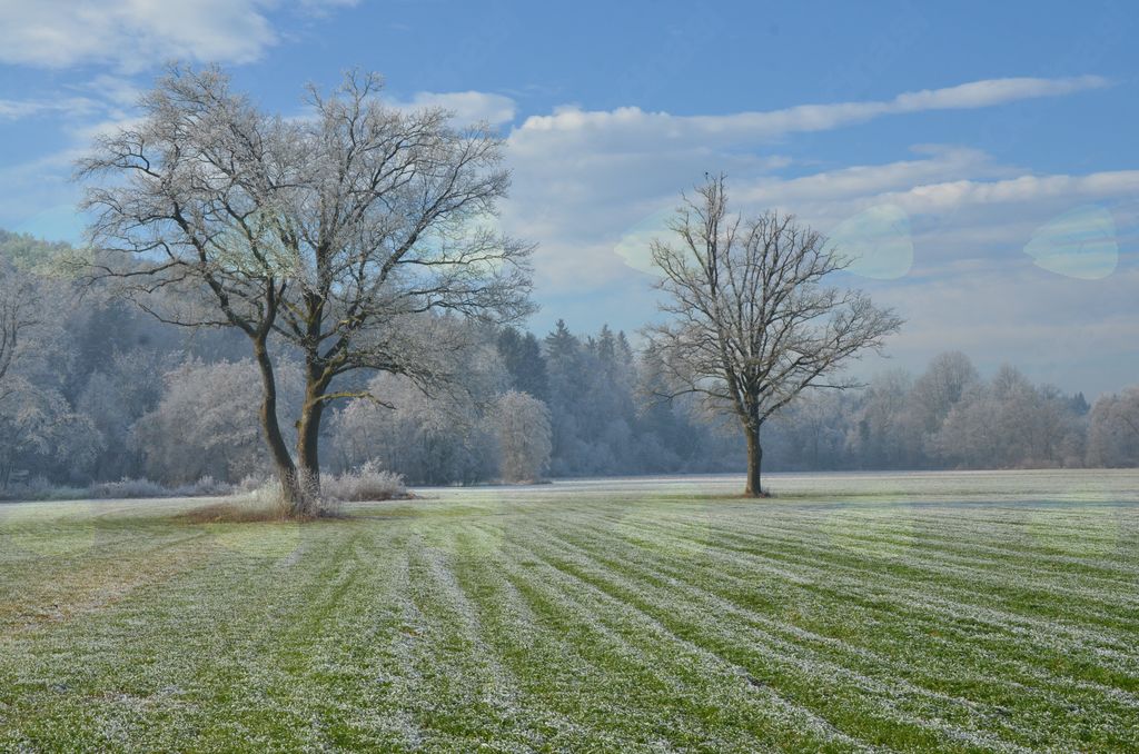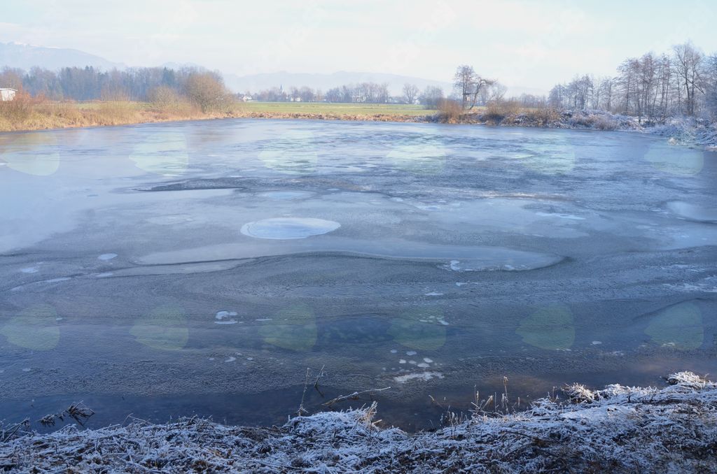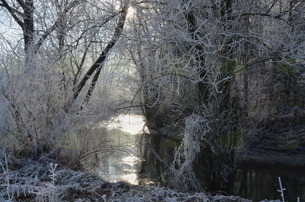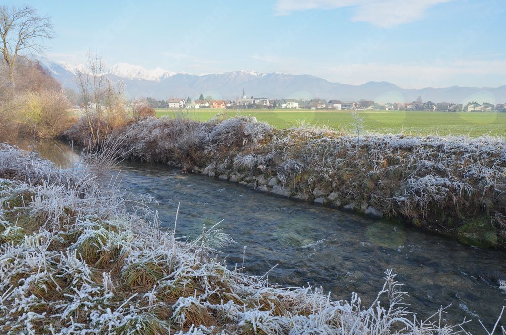 Žena Marta je pripravila okusen zajtrk, sam pa fotoaparat, kajti sklenil sem, da na tako lep dan ne bom tičal doma. Ker je bila noč kratka, očitno me je tudi prevzelo lepo predpraznično bogoslužje, sem se še malo »pocrkljal« na kavču, nato pa sva jo s štirinožnim prijateljem Kimijem ubrala najprej do Slevca, zatem ob Pšati navzgor, pa do Mlinčkov. Ugotavljal sem, da že malce zamujam najlepše prizore za fotografiranje (to človek bolj ali manj redno naredi), kajti prej tako izrazito in slikovito ivje je že odpadalo z vej, je imelo sonce kljub mrzlemu jutru (termometer je kazal minus šest stopinj) že toliko moči. Ivja pa je bilo še dovolj tam, kjer je bila še senca, sonce še ni tako visoko prikukalo izza Slevskega hriba. Pšata je odšumevala svojo pesem proti Topolam. Mestoma se je na njej že delal led, sončni žarki živahno odbijali od ledenih površin ter klokotajoče vode. Nikdar dovolj naslišana pesem, nagledana čarobna igra!