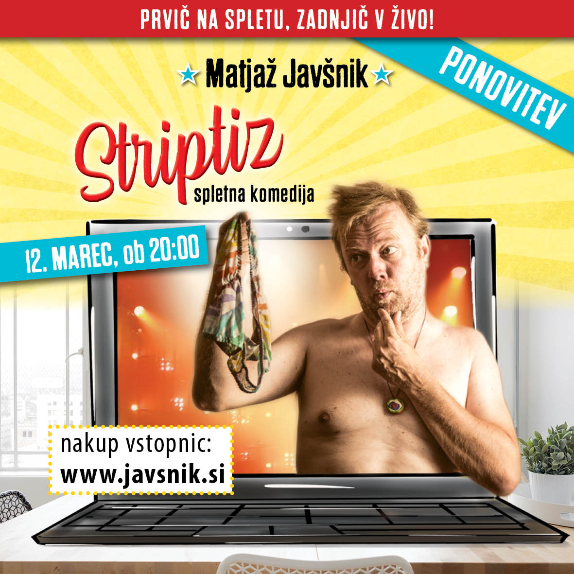 Zaradi izjemnega zanimanja ponovitev poslovilne predstave Striptiz legendarnega slovenskega komika Matjaža Javšnika.