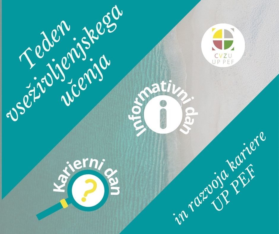 Od 24. do 28. maja 2021 Center za vseživljenjsko učenje Pedagoške fakultete Univerze na Primorskem organizira Teden vseživljenjskega učenja in razvoja kariere, ki bo potekal preko videokonferenčnega sistema ZOOM.