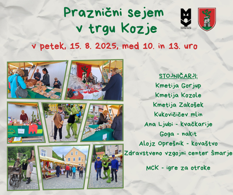 Vabljeni na praznični sejem v tgu Kozje na dan farnega praznika, v petek, 15. 8. 2025, med 10. in 13. uro.