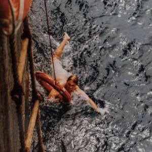 Človek v morju je gledališki dokumentarec, edinstvena pripoved o lepotah plovbe, o čarih mornarskega življenja, o najbolj pretresljivi in temeljni človeški preizkušnji, o upanju v brezupu ter o čudežu preživetja in rešitve.