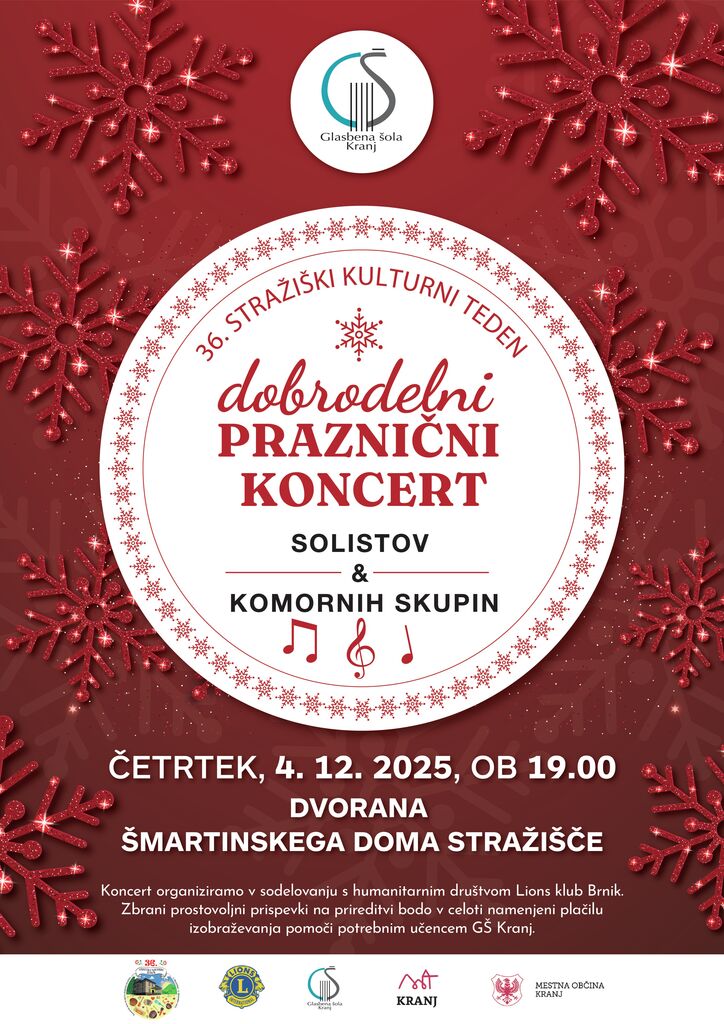 Vabljeni na Dobrodelni praznični koncert solistov in komornih skupin.