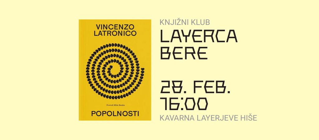 Vabljeni na prvo srečanje knjižnega kluba LAYERCA BEre, ki bo posvečeno romanu Popolnosti italijanskega avtorja Vincenzo Latronico.
