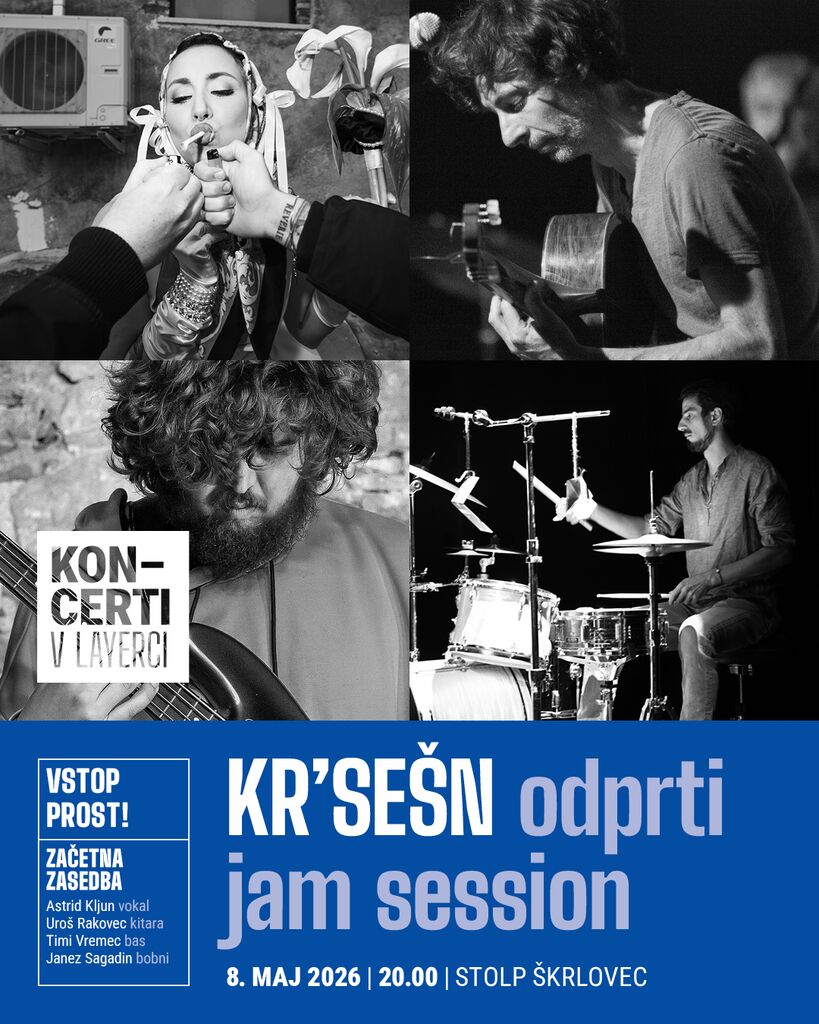 Na dogodku KR’sešn boste ob improvizirani glasbi, ki jo bodo tokrat soustvarjali Astrid Kljun, Uroš Rakovec, Timi Vremec in Janez Sagadin, doživeli edinstven večer spontanega, iskrenega glasbenega dialoga, ki nastaja tukaj in zdaj.