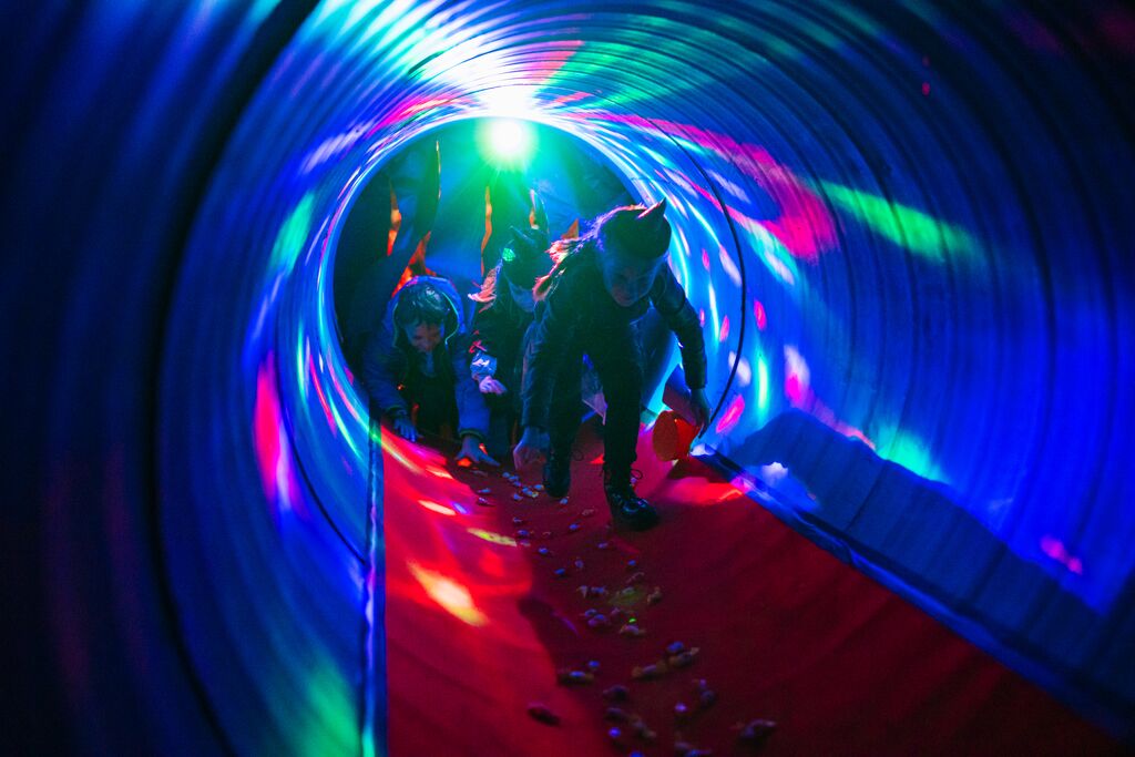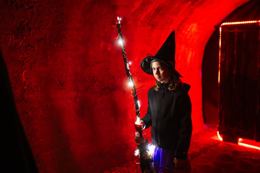 Na poti skozi 1.300 metrov dolgo kranjsko podzemlje bodo otroci srečali strašnega grbastega grdobca, ki se skriva po temnih vogalih in je na videz strašen, v resnici pa ne preveč bister in ne preveč pogumen, čarovnico, ki se med ljudmi ne zna lepo obnašati in izgleda strašno, a se ji ob srečanju z otroki otopli srce, preizkusili bodo tudi svojo orientacijo v temnih delih rova. Na koncu pa jih bo Pravljični čarovnik naučil, da je strah votel, okoli pa ga nič ni. Čarovniški napoji, uroki, srh, gravž in veliko smeha za vse majhne čarovnice in čarovnike.