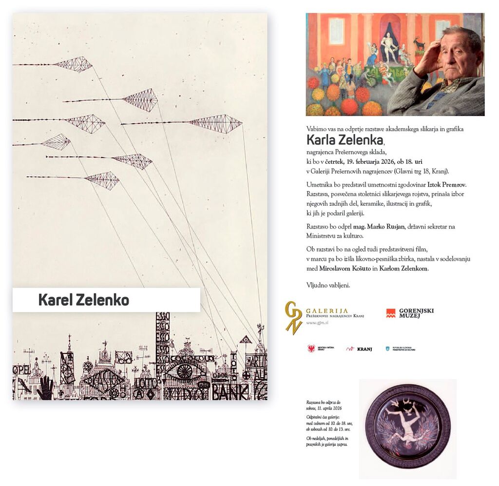 Vljudno vabljeni na odprtje razstave del akademskega slikarja in grafika Karla Zelenka, ki smo jo v Galeriji Prešernovih nagrajencev pripravili ob umetnikovi stoletnici.