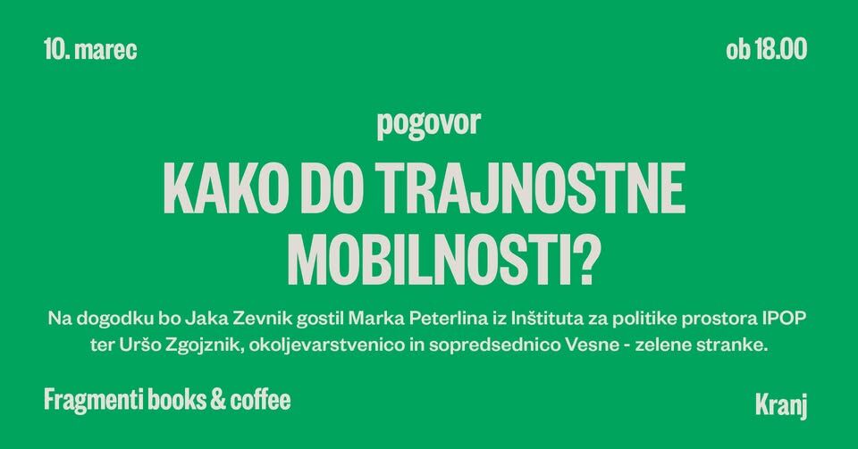 Vabimo vas v Fragmenti Kranj – books & coffee na pogovor o trajnostni mobilnosti.