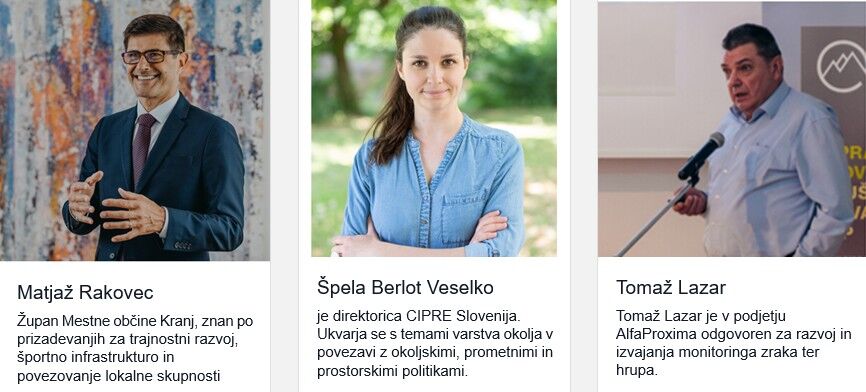 | 17:05-17:15 | Zakaj se je potrebno s kakovostjo zraka sploh ukvarjati?, Špela Berlot Veselko, CIPRA Slovenija |