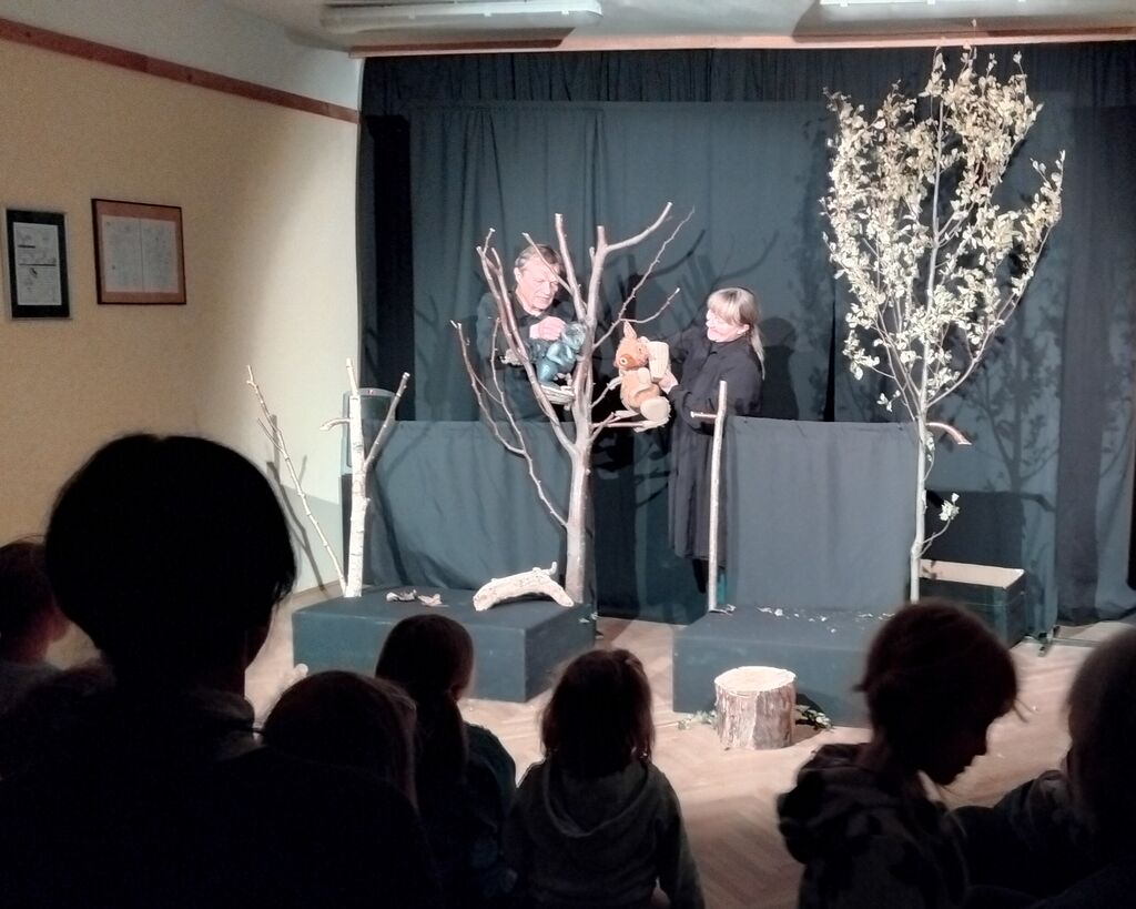 V januarju smo spletli naslednjo zgodbo: LEV IN MIŠKA sta imela kuharski tečaj za začetnike. Prvi recept je bil kuhanje vode. Če še ne veste je voda kuhana takrat, ko iz nje izhajajo MEHURČKI. Te mehurčke je ČARODEJ TONI spremenil v storže in kostanje, ki jih je VEVERIČEK POSEBNE SORTE metal na glavo lisici, ki je prežala na male veverice.