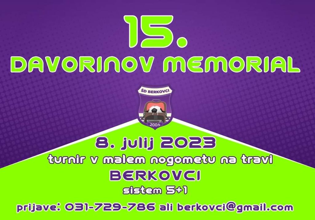 Športno društvo Berkovci prireja 8.7.2023 15. tradicionalni turnir v malem nogometu "Davorinov memorial" s pričetkom ob 9 uri.