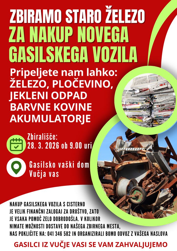 PGD Vučja vas zbira staro železo za nakup novega gasilskega vozila, s katerim bomo zamenjali našo 25 let staro cisterno TAM.