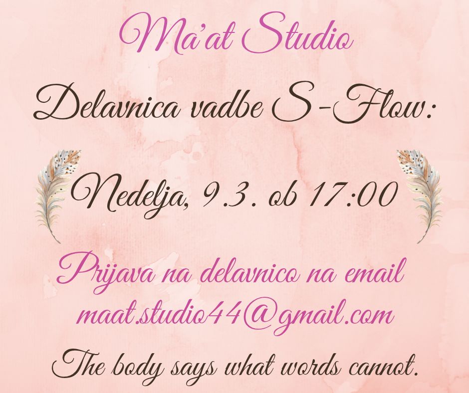 9.3. DELAVNICA VADBE S-FLOW ZA ŽENSKE 17:00 - 19:00
