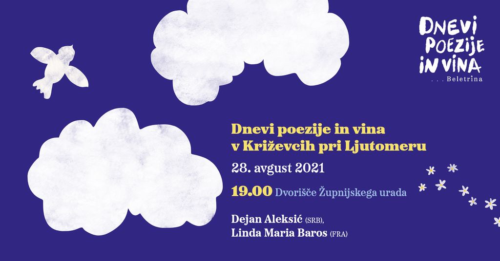 V okviru tega festivala bomo v Križevcih pri Ljutomeru gostili pesnika Dejana Aleksića iz Srbije in pesnico Lindo Mario Baros iz Francije.