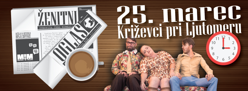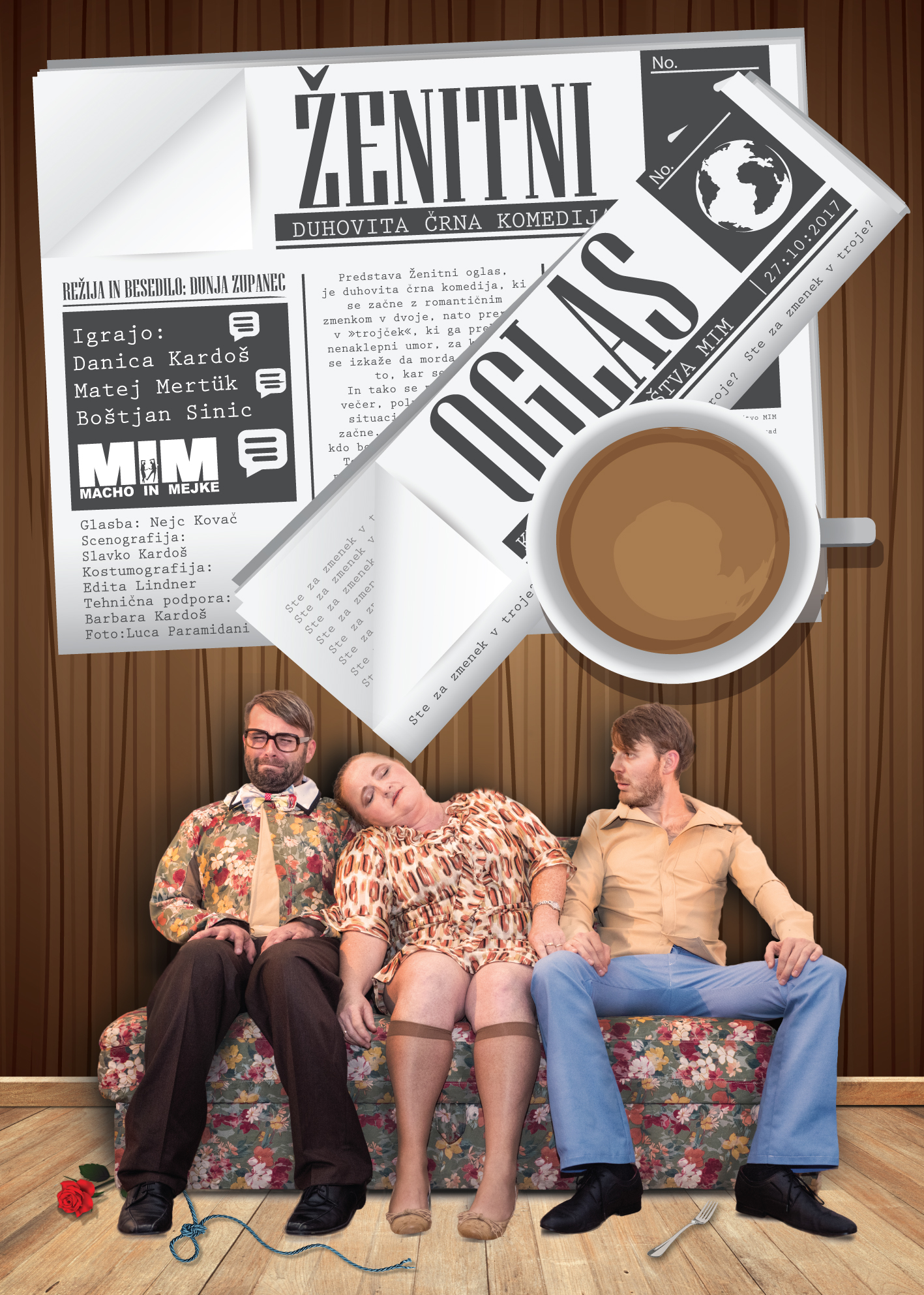 Predstava Ženitni oglas, je duhovita črna komedija, ki se začne z romantičnim zmenkom v dvoje, nato prerase v »trojček«, ki ga prekine nenaklepni umor, za katerega se izkaže da morda le ni bil to, kar se zdi. In tako se naš kaotični večer, poln preobratov in situacijske komike šele začne. Kako se pa konča in kdo bo koga ter kdo bo s kom? To pa si lahko ogledate v naši predstavi, ki vas ne bo pustila ravnodušnih, pa tudi brezdušnih ne.
