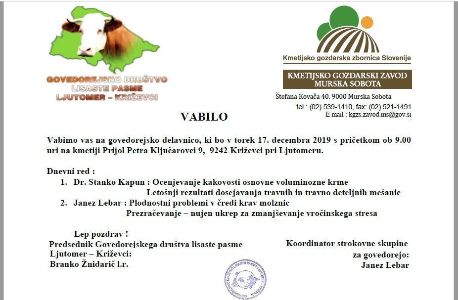 Organizator: GOVEDOREJSKO DRUŠTVO LISASTE PASME LJUTOMER - KRIŽEVCI