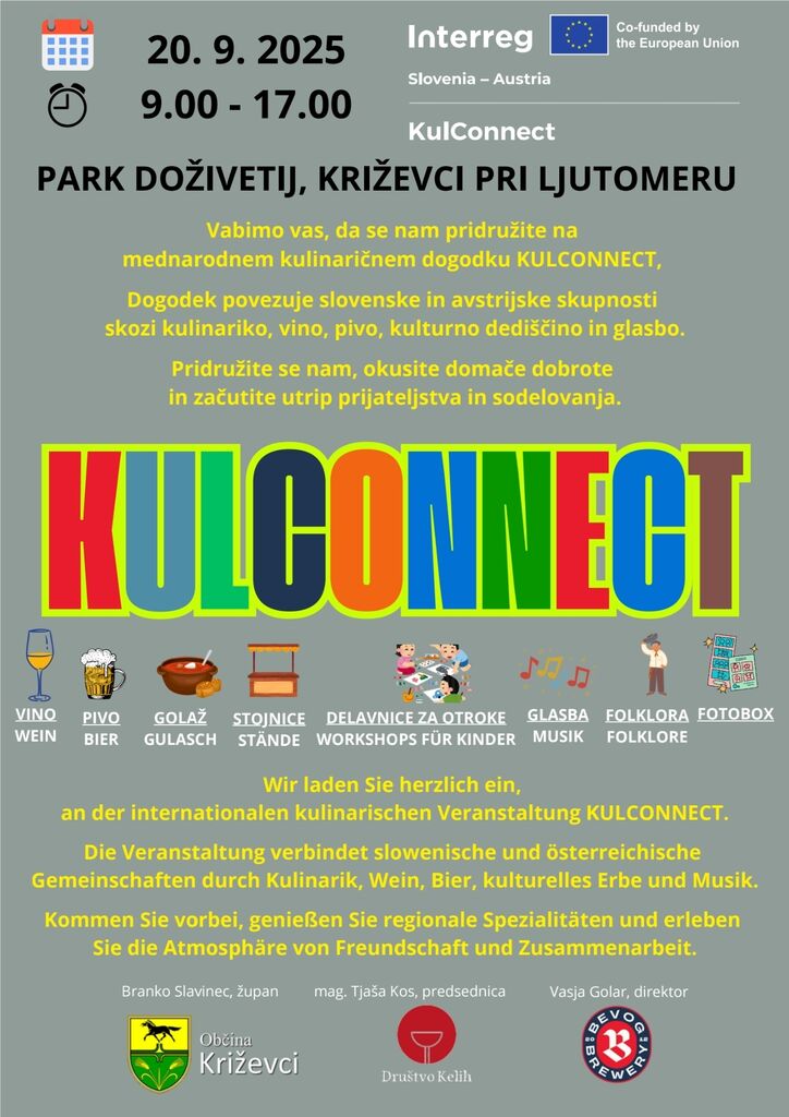 vabimo vas, da se nam 20. septembra 2025 pridružite na mednarodnem kulinaričnem dogodku KULCONNECT v Parku doživetij v Križevcih pri Ljutomeru.