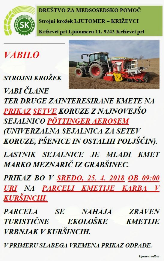 Organizator: DRUŠTVO ZA MEDSOSEDSKO POMOČ STROJNI KROŽEK LJUTOMER-KRIŽEVCI