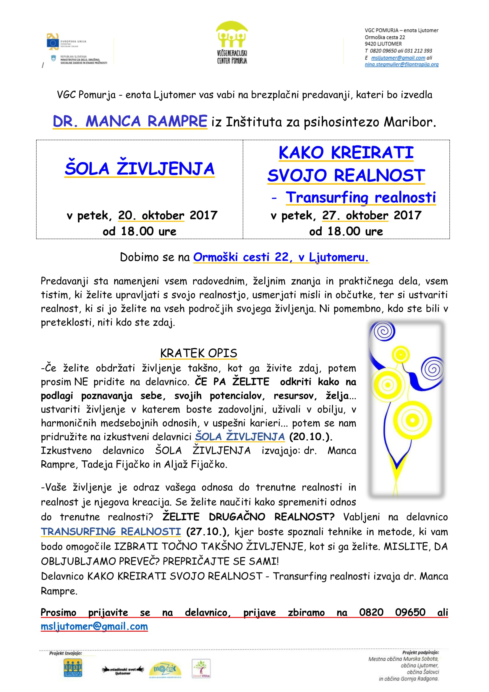 V sodelovanju z Inštitutom za psihosintezo Maribor, pripravljamo brezplačno predavanje: "Kako kreirati svojo realnost - Transurfing realnosti v času"
