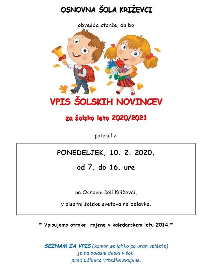 Organizator: OBČINA KRIŽEVCI, Osnovna šola Križevci