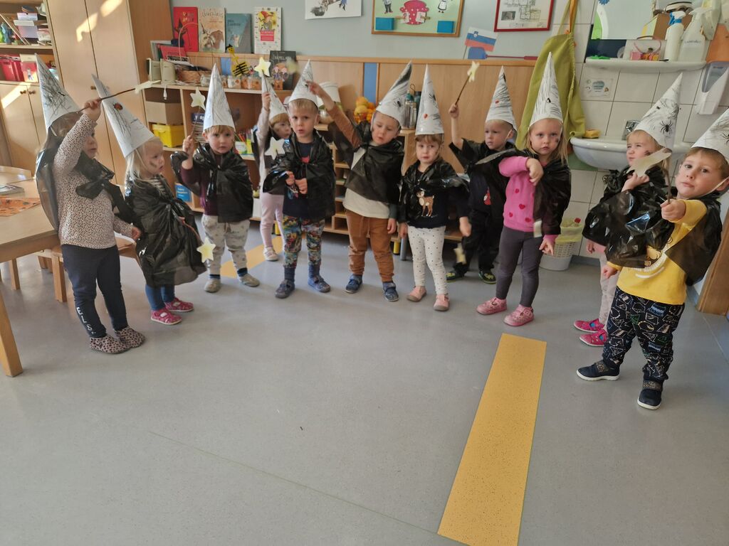 Tudi v vrtcu smo ves čas priča raznim »čarovnijam« – med igro se hitro spreminjamo v princeske, kraljeviče, policiste, gasilce, živali in še mnogo več. Zato z veseljem en teden v oktobru namenimo prav čarovnicam – ne tistim zlobnim, ampak seveda prijaznim, ki jih je prav tako veliko.