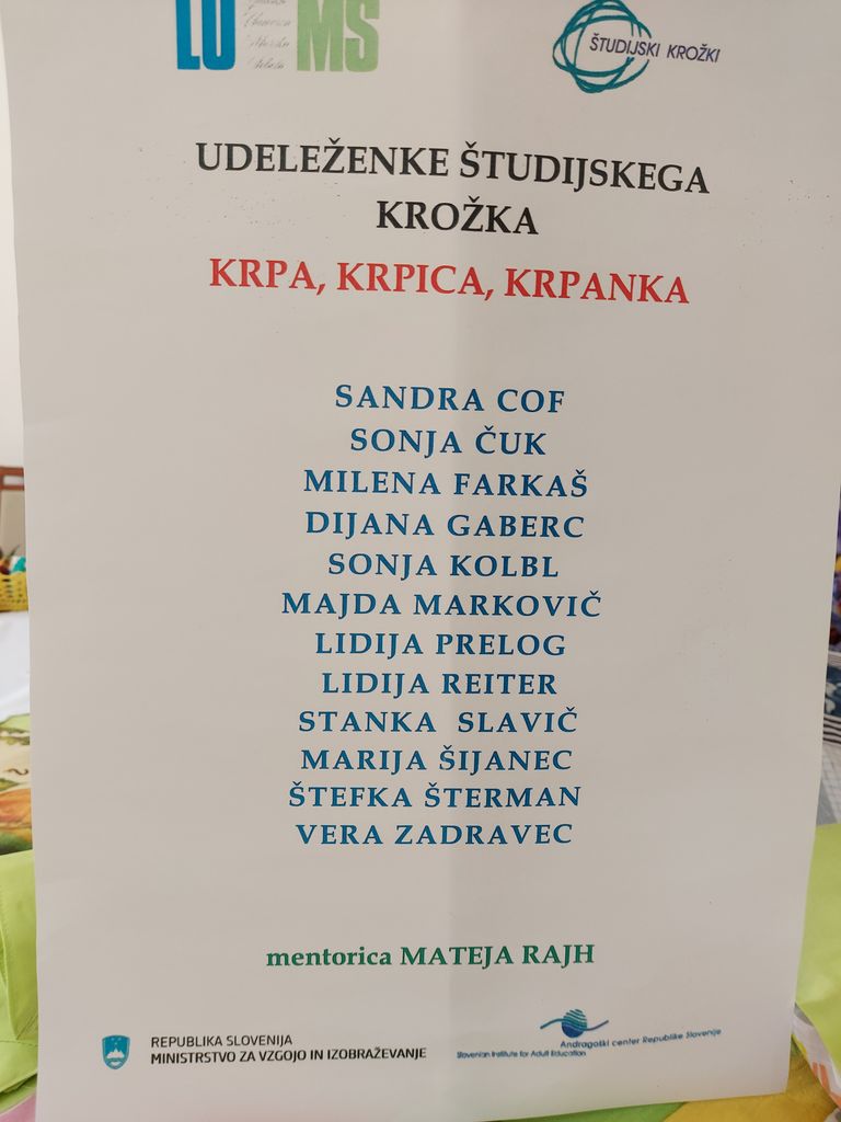 V sodelovanju z Ljudsko univerzo Murska Sobota in andragoškim centrom Republike Slovenije, so članice delovale v sklopu študijskega krožka, ki so se ga udeleževale enkrat tedensko v prostorih Občine Križevci, pod mentorstvom Mateje Rajh. Delavnic se je udeležilo 12 udeleženk.