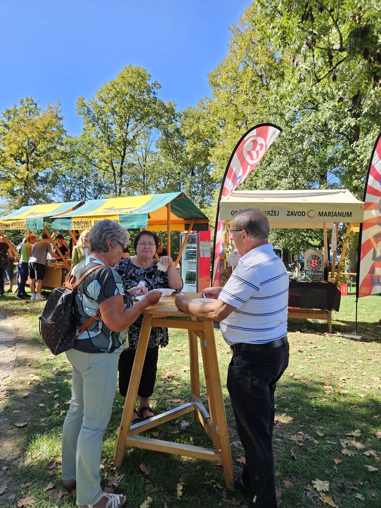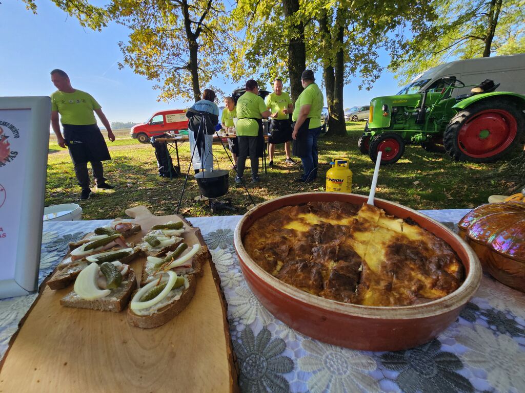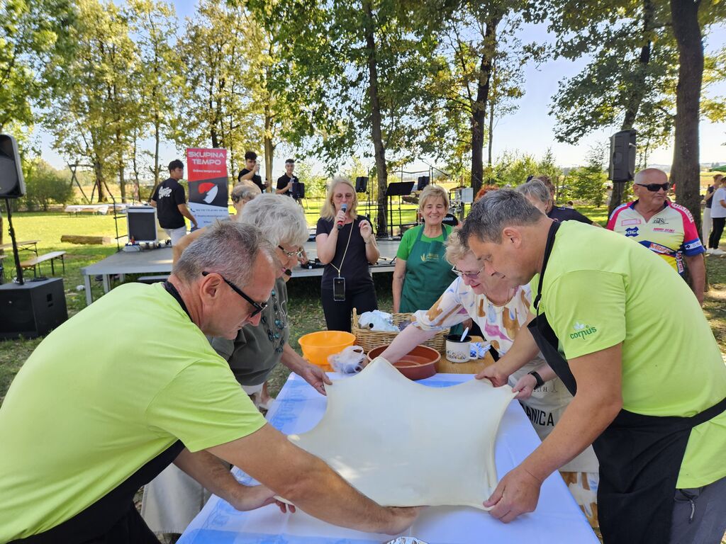 Posebno pozornost je pritegnil prikaz priprave prleške gibanice v živo, ki sta ga izvedli Majda in Lidija, obiskovalci pa so se ustavljali tudi pri stojnicah lokalnih ponudnikov in rokodelcev.