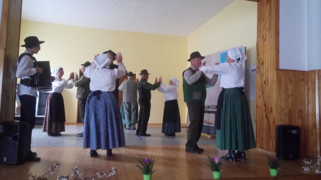Z mladinsko gledališko sekcijo '' podivjone ''  (pod vodstvom mentoric: Anita Škrjanec in Tea Recek) smo otvorili prireditev z  zanimivo igro z naslovom: življenje na deželi nekoč in danes in tako prikazali razlike življenj nekoč in danes.  Naslednje nastopajoče so bile perice – pevke ljudskih pesmi iz KUD Janez Čuk Vučja vas (pod vodstvom mentorice ga. Ana Lebar), ki so se nam predstavile z 3 ljudskimi pesmi. V pesmih so besede, ki so jih ljudje uporabljali v davnih časih naprimer: Prelüba moja mati ali po zelenih košenincah sem čeveljčke zrosil, itd.