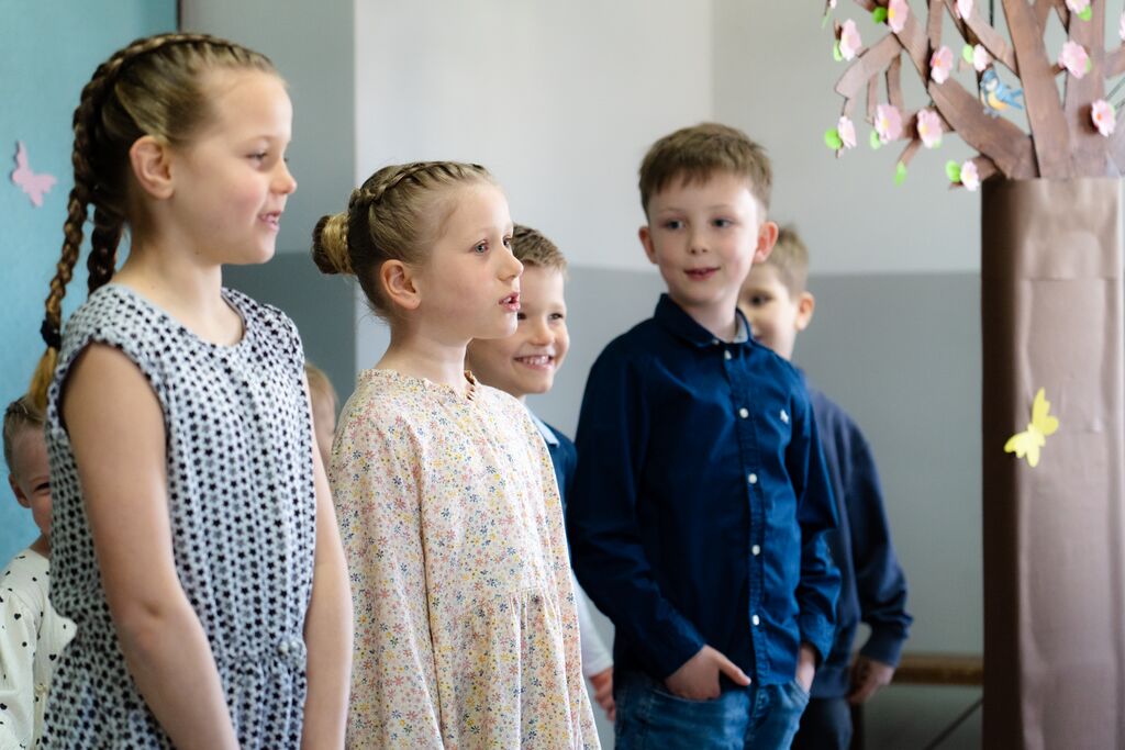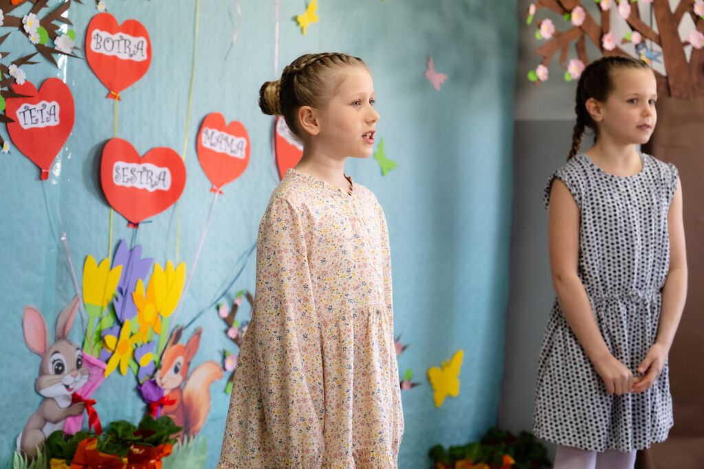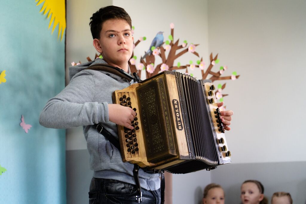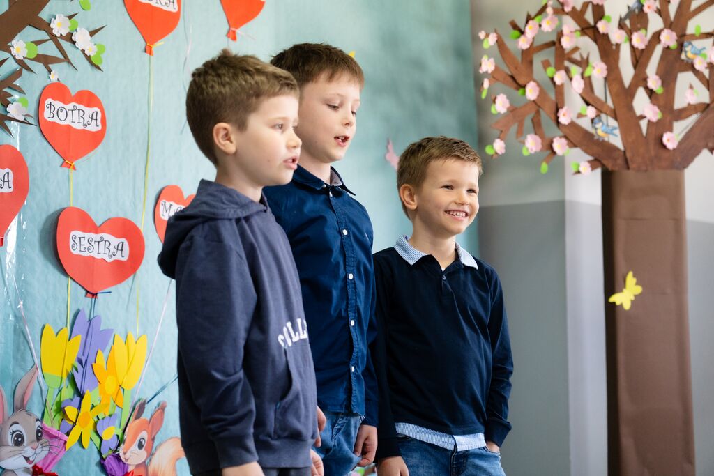 Sledil je nastop fantov. Najprej se je po tipkah svoje harmonike sprehodil Nik, ki je zaigral Mamica je kakor zarja, nato pa so pesmico Piki, moj prijatelj zapeli Jaka, Nejc in Luka. Na vrsti sta bili nato najmlajši deklici – Arta Lia se je predstavila s pesmico Zajček, Ela pa s pesmico Moja hišica.