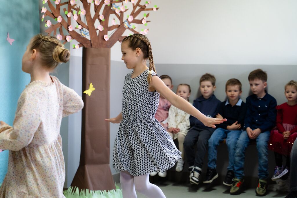 Najprej so vsi skupaj zapeli pesem Kukavica, nato sta se s pesmico Mama je ena sama predstavili Nuša in Lija. Za njima sta se s plesnimi koraki predstavili Lana in Ema.