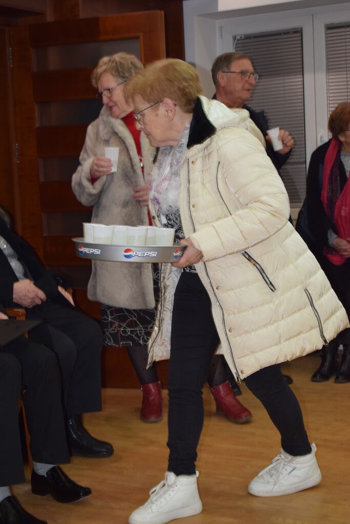 Za mikrofon je že zimzeleni in zgovorni voditelj prireditve g.Bojan Rajk k nagovoru povabil glavno organizatorico ga.Milico Hamler, župana Občine Križevci g.Branka Slavinca in ga.Miro Rebernik Žižek, vodjo območne izpostave JSKD Ljutomer. Gledalci so z glasnim aplavzom, tudi med samim izvajanjem, nagradili nastopajoče, od požrtvovalne in vsestranske upokojenke ga.Dragice Škarjot, pa so prejeli še priložnostne zahvale in šopek. Članice DU Križevci - prostovoljke pa so že tradicionalno pripravile tudi slikovite in okusne prigrizke in dovolj pijače za prisotne nastopajoče in gledalce z gosti, ki so se po uspešni prireditvi v dvorani, preselili v občinsko sejno sobo in na hodnik pred njo, ter se veselo družili ob sproščenem klepetu, živi glasbi, plesu, hrani in pijači.