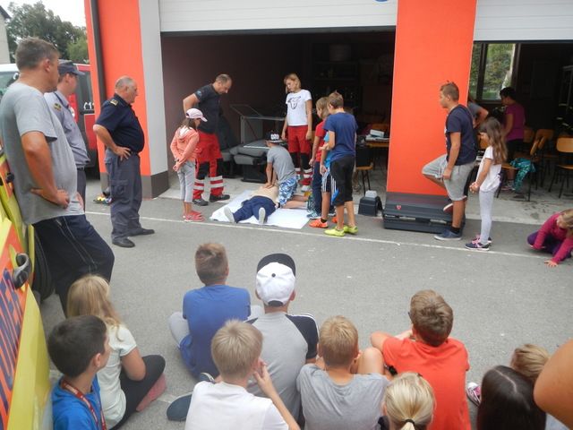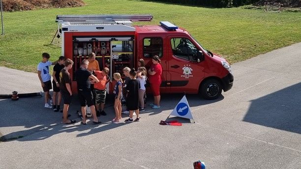 - timsko delo v skupinah - spoznavanje gasilsko športnih disciplin (vedrovka, hidrant, met torbice, veslanje, ipd.)