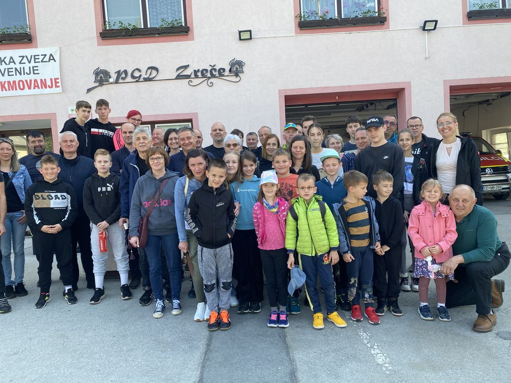 Prva postaja – Gasilski dom Zreče. Velikodušni gasilci gasilskega društva Zreče so nas pričakali z nasmehom na obrazu, čeprav so se nekaj minut pred našim prihodom vrnili iz intervencije na avtocesti. Gasilska vozila in oprema se je pripravljala in nalagala za naslednje klice na pomoč. Njihova gasilska skupina je namreč okrožna in skrbi tudi za intervencije na avtocesti. Komandir nam je pokazal njihov gasilski dom, ki pa skoraj z vsakim letom pridobi kakšen kvadratni meter dodatnega prostora. Ob gasilskem domu se dviga visok stolp, v okolici pa poligon za vaje. Ko stopiš v dom, se ti oči kar ne morejo navaditi bleska pokalov. V vsaki sobi in polici lahko občutiš njihovo prizadevanje in dosežke. Komandir se pohvali tudi s tem, da jim pomladka ne manjka in da so imeli v prejšnjem tednu na tekmovanju kar 15 tekmovalnih ekip in skoraj polovica jih je bila na prvem mestu. Gasilski avto, čoln in ostala vozila so bila najbolj všeč našim otrokom, ki so se kar podali v raziskovanje in delanje selfijev.