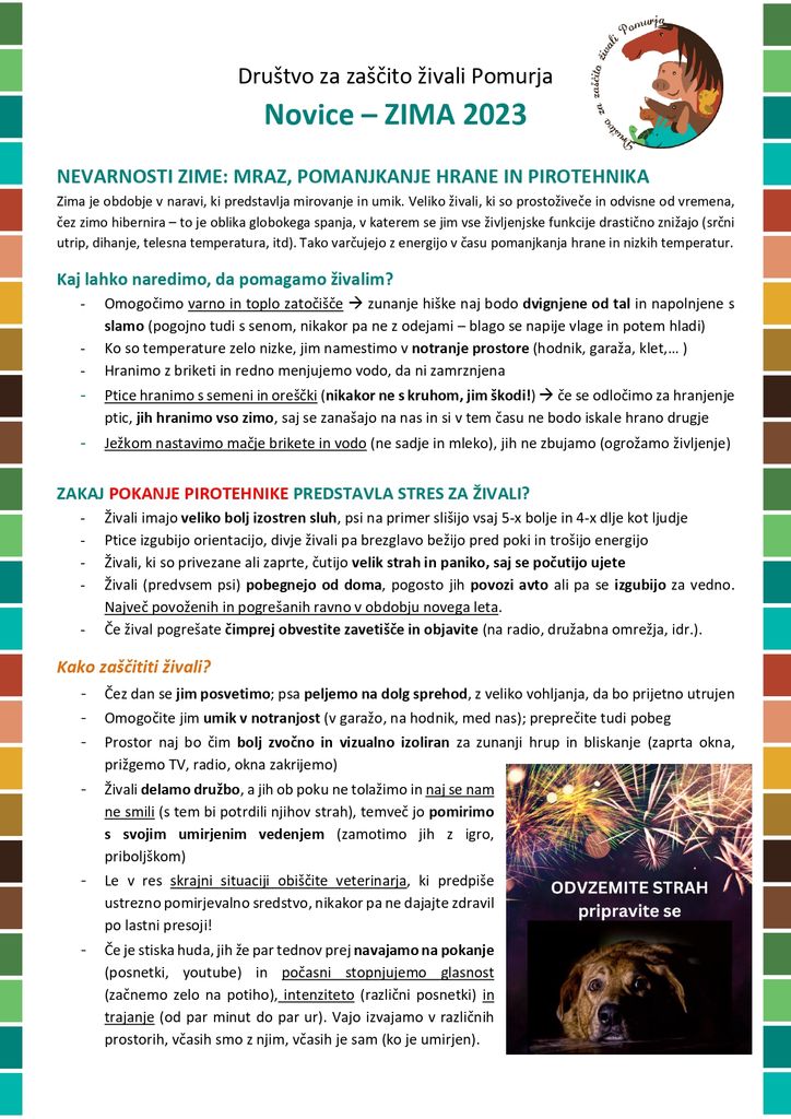 Društvo za zaščito živali Pomurja "Novice – ZIMA 2023"