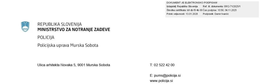 Policisti in kriminalisti Policijske uprave M. Sobota v jesenskem in zimskem času pogosto beležimo povečanje števila vlomov v stanovanjske hiše iz katerih  vlomilci odtujijo denar, bančne kartice, nakit ter tehnične predmete (npr. prenosne in tablične računalnike,...). Prav tako opažamo, da storilci izvršujejo tudi tatvine pri katerih  izkoriščajo nepazljivost oškodovancev in jim pod različno pretvezo (npr. lažno se predstavljajo za delavce telekomunikacijskih podjetij, prodajo posode, oblačil, odej, nožev, itd.) odtujijo denar in druge vrednejše predmete.