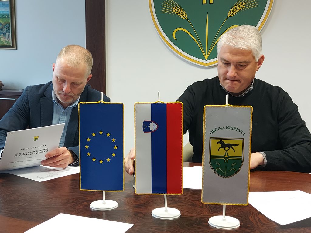 Župan Občine Križevci Branko Slavinec je dne 12. maja 2023 z direktorjem gospodarske družbe Legartis d.o.o., Matjažem Hozjanom podpisal gradbeno pogodbo za dokončanje pločnika v Ključarovcih.